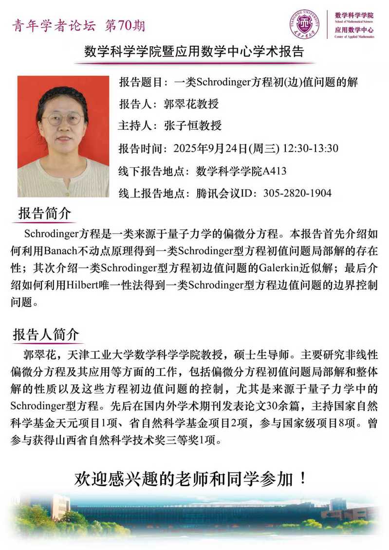 天津工业大学郭翠花教授学术报告